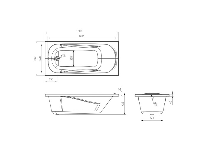 FIESTA ванна 150*70*43,5см без ножек, акрил 5мм