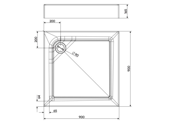 Поддон квадратный с интегрированной панелью, размеры: 90*90 см