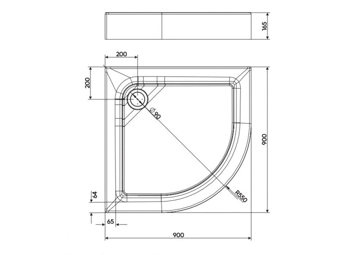 Душевой поддон с интегрированной панелью, угловой, акриловый, размеры: 90*90 см, выпуск 90 мм