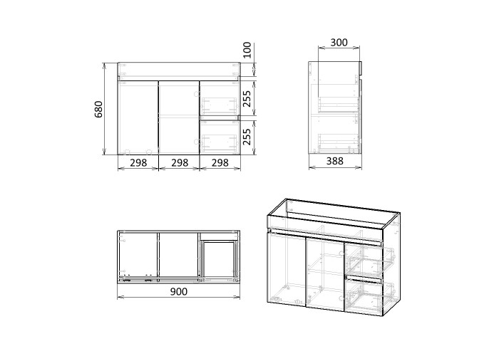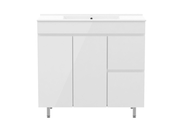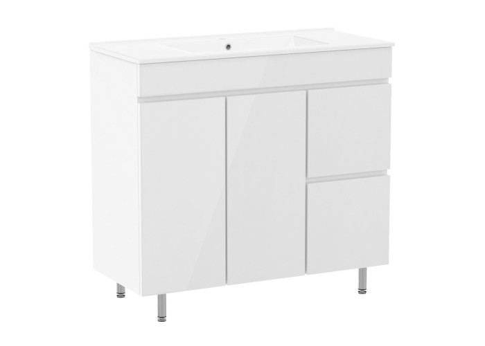 FLY комплект мебели 90см, белый: тумба напольная, 2 ящика, 1 дверца, корзина для белья + умывальник накладной арт RZJ910