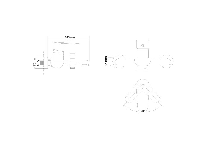 FLY смеситель для ванны однорычажный, хром/бел., 35 мм
