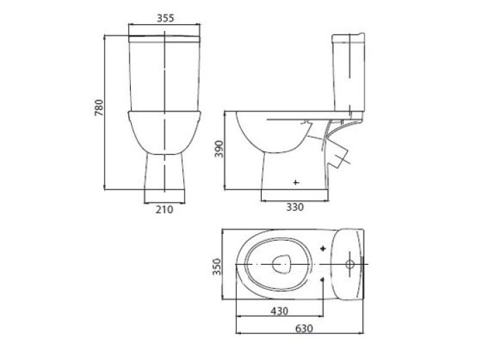 FREJA Premium компакт, косой выпуск, сливной бачок 3/6 л, нижний подвод, сиденье с крышкой Duroplast Soft-close (медленное падение)
