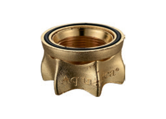 Гайка крепежная AQUATICA тип «корона». Размер M28×1.5 мм, высота 27 мм. Материал – латунь. Используется для крепления на горизонтальную поверхность смесителей для кухни или умывальника.
