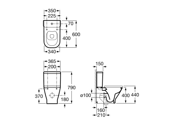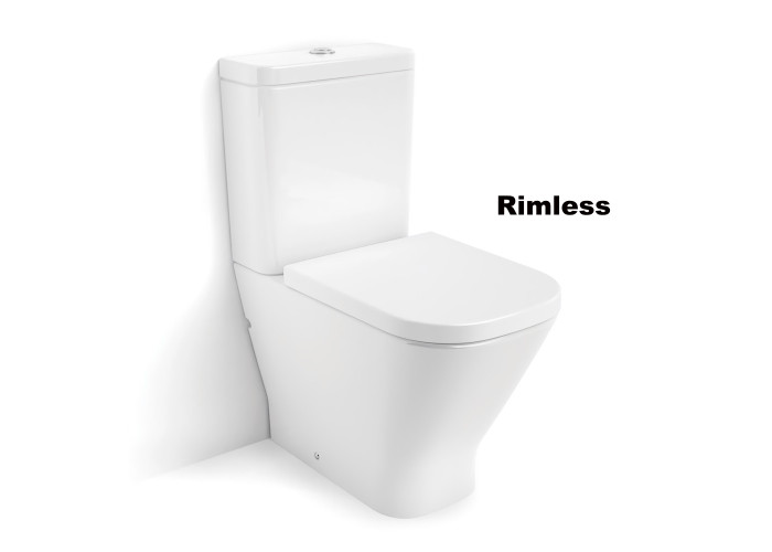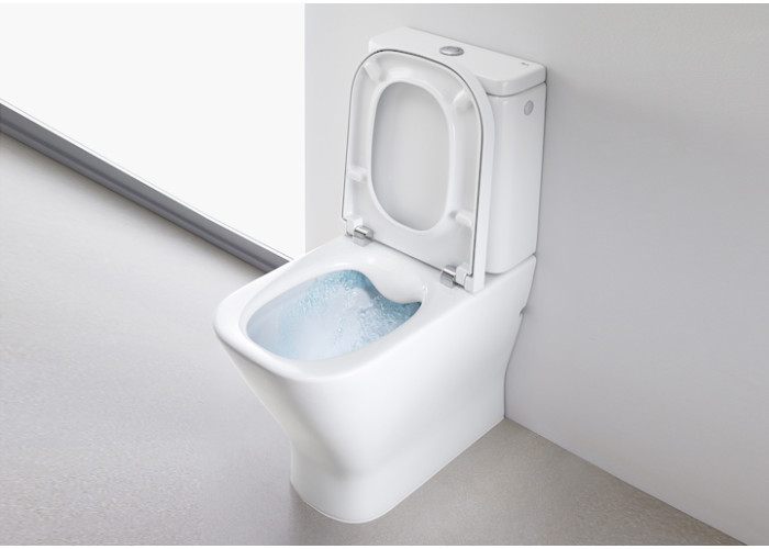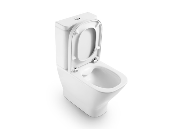 Унитаз - компакт, напольный, двойной, глубина 600 мм, нижний подвод, универсальный излив, без ободка. Сиденье округлое, дюропласт, Soft-close