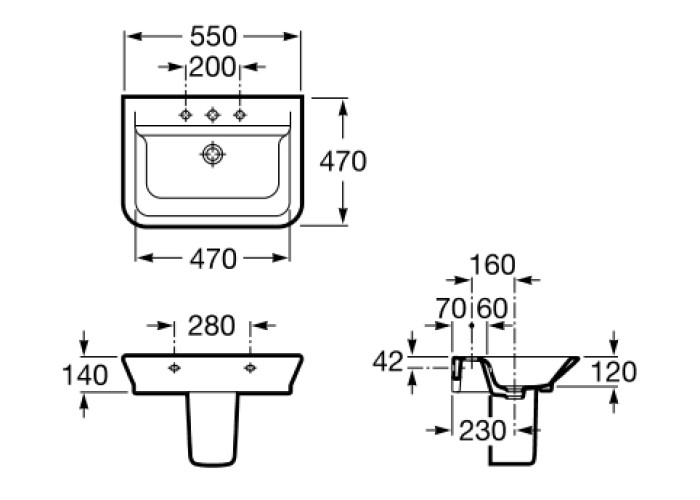 GAP умывальник 55x47 см, с отверстием под смеситель, с переливом