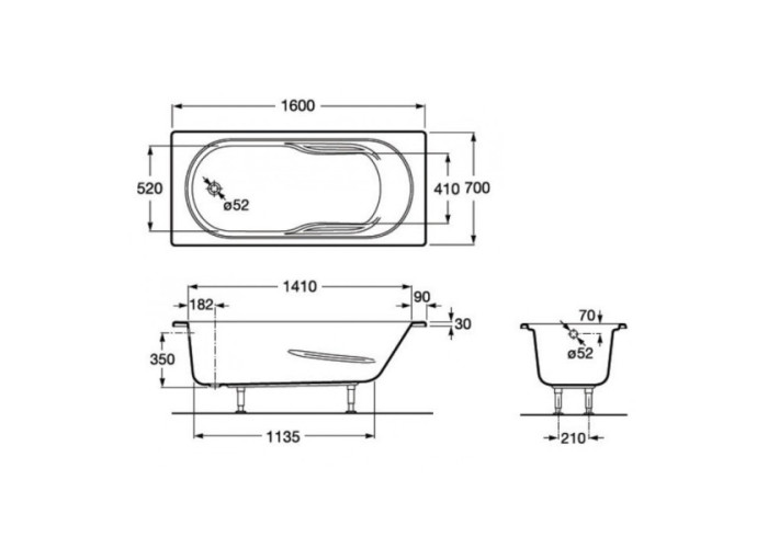 GENOVA ванна 150*70см прямоугольная, с регулир. ножками в комплекте, объем 158л