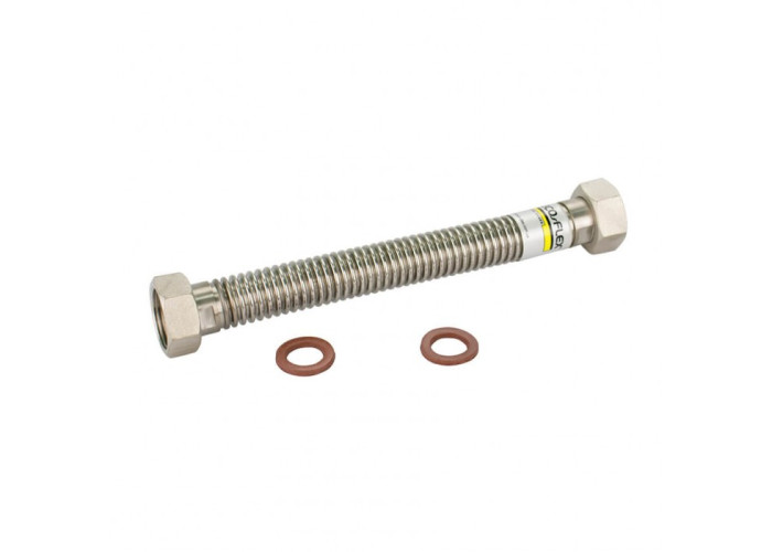 Гнучка підводка для води ECO-FLEX Тепло 3/4 "80 см ВВ дає можливість з'єднати між собою ділянки трубопроводу навіть в самих важкодоступних місцях. Вона дуже гнучка, при стійкості до деформації, напруження і тиску. Гайки на кінцях підводки на воду ECO-FLEX із серії Тепло помітно спрощують і прискорюють установку пристосування. При правильно проведеному монтажі виріб може прослужити до 15 років.