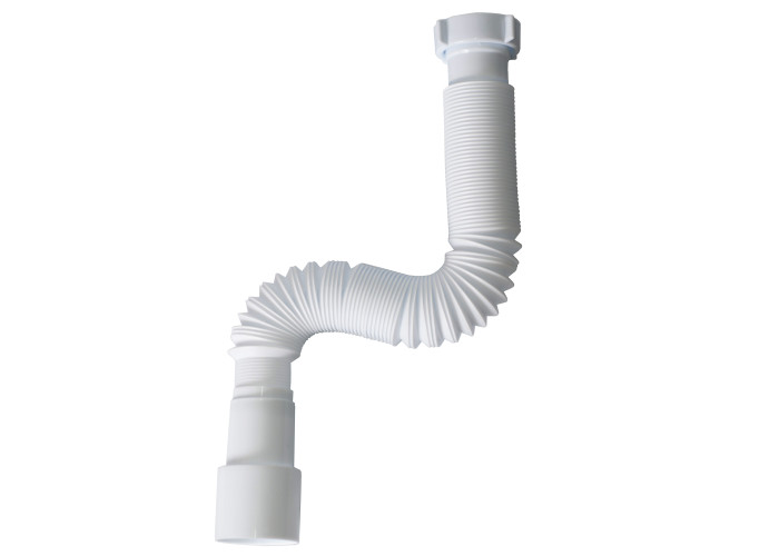 Гибкая труба для сифона. Производство Украина. Цвет: белый. Материал: полиэтилен. Основные принципиальные отличия гофротрубы от изделий более раннего сантехнического периода: возможность регулировки длины, поворот практически под любым углом, наличие жестких пластиковых наконечников - без которых невозможна действительно надежная обжимная герметизация соединений. Гибкая сливная труба может выпускаться различного диаметра жестких наконечников (32, 40, 50 мм и др) как со стороны подключения к канализации, так и к сифону. Торговая марка SANTEHPLAST (Сантехпласт).
