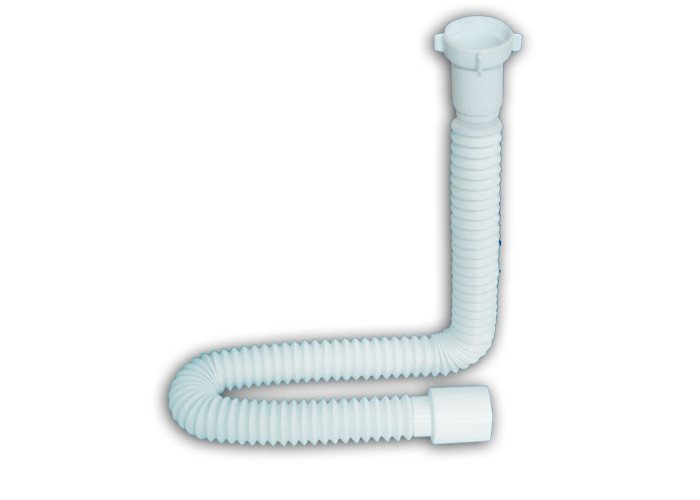 Гнучка труба для сифона. Виробництво Україна. Колір: білий. Матеріал: поліетилен. Основні принципові відмінності гофротруби від виробів більш раннього сантехнічного періоду: можливість регулювання довжини, поворот практично під будь-яким кутом, наявність жорстких пластикових наконечників - без яких неможлива дійсно надійна обтискна герметизація з'єднань. Гнучка зливна труба може випускатися різного діаметру жорстких наконечників (32, 40, 50 мм та ін) як з боку підключення до каналізації, так і до сифона. Торгова марка SANTEHPLAST (Сантехпласт).
