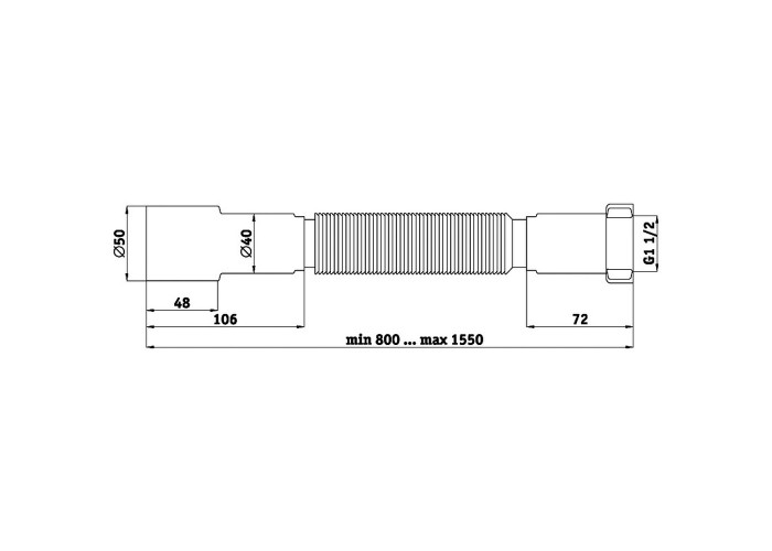 Гибкая труба ANI PLAST К116 выполнена из пластика классического белого цвета в виде прямой трубы, которая благодаря наличию гофры может изменять угол и длину от 800 мм до 1550 мм. Изделие обладает небольшим весом, поэтому устанавливается без особых усилий и дополнительного приспособления. Благодаря материалу изготовления труба имеет длительный срок эксплуатации, устойчива к образованию коррозии и затворов, высоким температурам и химическим средствам.