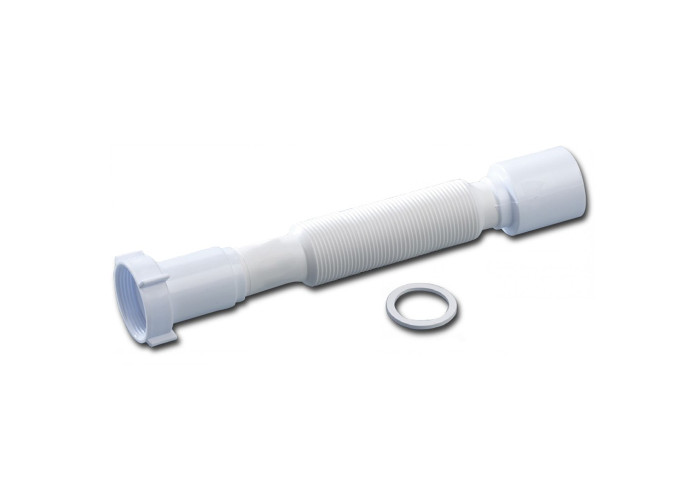 Гибкая труба с накидной гайкой Krono Plast ГН060 выполнена из пластика классического белого цвета в виде прямой трубы, которая соединяет сливную систему с внутренней канализацией. Наличие гофры делает процесс установки простым и универсальным. Изделие имеет небольшой вес, поэтому монтируется без усилий и дополнительного приспособления, а также длительный срок эксплуатации, стойкость к образованию коррозии, затворов и высоким температурам, благодаря материалу изготовления.
