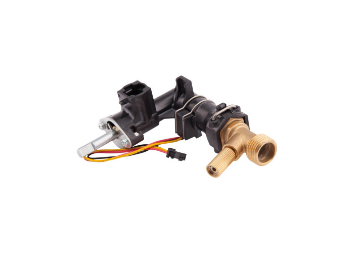 Гидроблок входа (старый) Thermo Alliance (301130056) включает в себя реле протока (турбинка + датчик Холла) и предохранительный клапан. При образовании протока воды турбинка начинает вращаться и возникает электромагнитный сигнал, который передается плате управления с помощью датчика Холла. Он состоит из пластика и латуни, а снаружи имеет стальное покрытие.