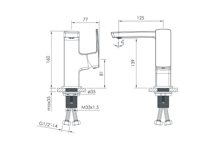 Смеситель для раковины, настольный монтаж, однорычажный, ручка сбоку, 35 мм, цвет - black nickel.