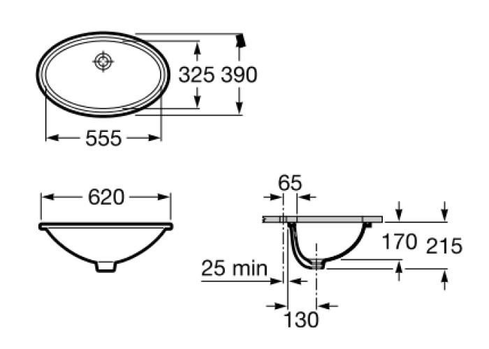 GRAND BERNA умывальник подвесной 62*39 см, без отверстия под смеситель, с переливом