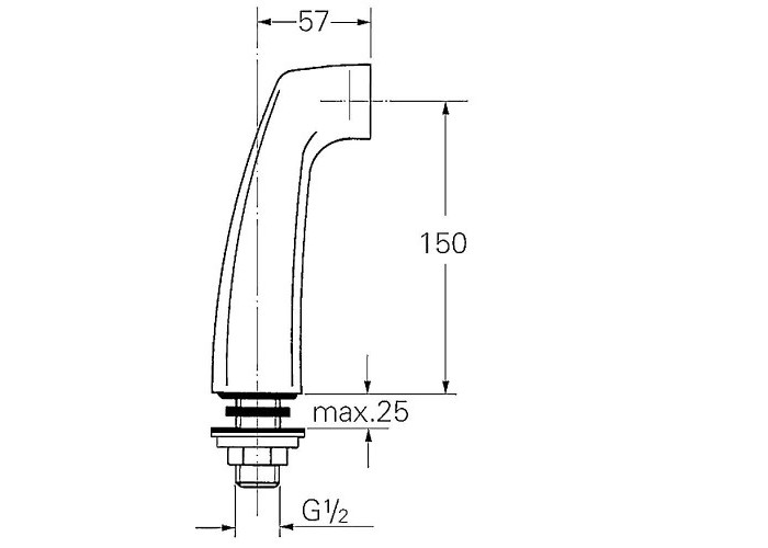 Крепеж для вертикального монтажа, для Europlus и Florida, стержневое соединение, резьбовое соединение 1/2, обратное резьбовое соединение 1/2, вынос 57 мм, высота 150, мм, без ниппелей.