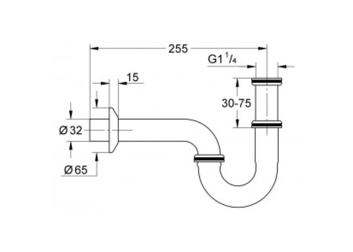 Сифон 1 1/4 для умывальника,настенное подключение, наружный с выпуском, хромированная поверхность. Диаметр - 32 мм, длина - 255 мм, материал - латунь, без перелива.