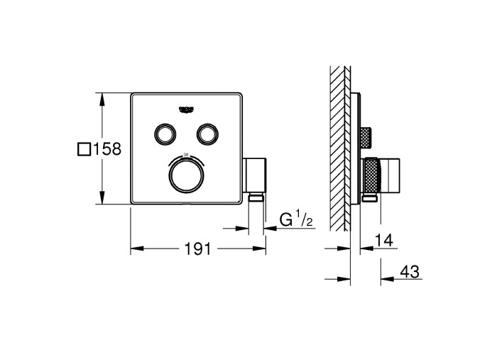 Grohtherm SmartControl термостат для душа, внешняя часть, на 2 потребителя, со встроенным держателем ручного душа.
