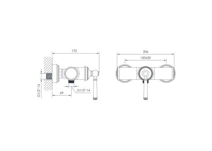 Смеситель для душа, 35 мм, настенный монтаж, однорычажный, цвет - brush nickel.