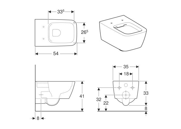 ICON Square унитаз подвесной Rimfree, воронкоподобный, закритая форма, Rimfree