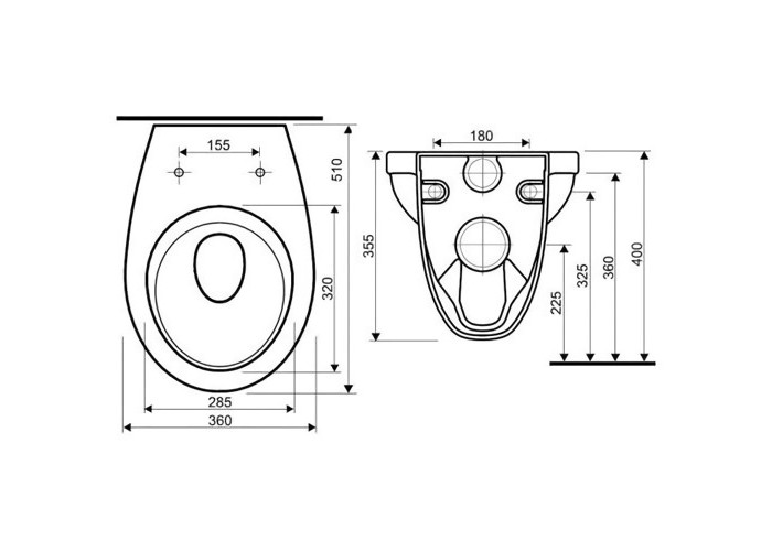 IDOL подвесной унитаз с сидением с микролифтом (плавное закрывание), материал дюропласт, глубина 510 мм,, горизонтальное подключение, подвод воды задний, тип слива двойной 3/6 л