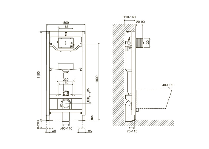 - Высота инсталляции 1150 (+/-) 200 мм