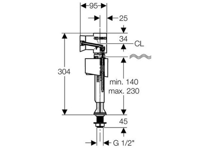 Впускной клапан 1/2, нерегулируемый тип смыва, нижний подвод воды.
