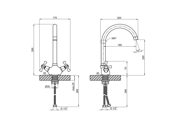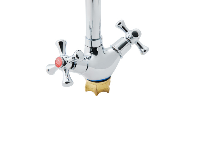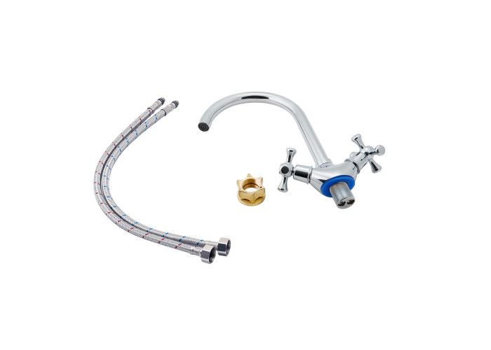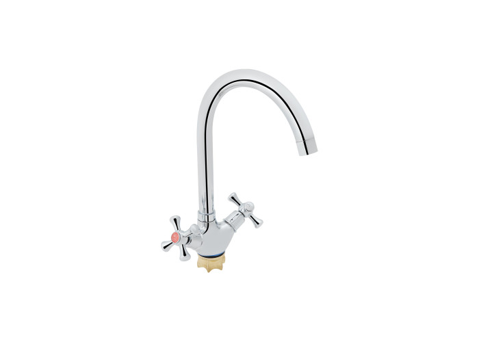 Змішувач для кухні Lidz (CRM) 75 21 271F-8 виготовлений з високоякісної латуні. Завдяки глянцевому хромованому покриттю виріб має оригінальний зовнішній вигляд і має більшу стійкість до зношування. Виконано в класичному стилі, з вентильними ручками для перемикання потоку холодної та гарячої води.