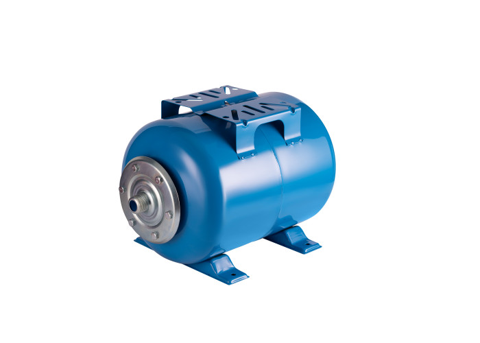 Горизонтальний гідроакумулятор з вуглецевої емальованої сталі служить для підтримки стабільного тиску води в автономній системі водопостачання. Встановлюють таке обладнання для захисту сантехнічних пристроїв від гідравлічних ударів і продовження їх терміну служби.