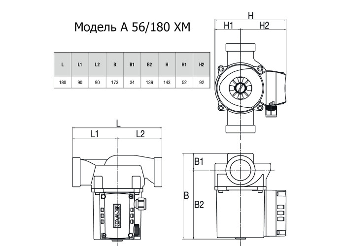 Насос циркуляційний DAB A 56/180 XM використовують у складі систем опалення та кондиціонування. При встановленні та подальшій роботі вал двигуна має бути розміщений вздовж лінії обрію, монтажна база становить 180 см. Пристрій забезпечить циркуляцію теплоносія в інженерній системі. Згідно з експлуатаційними вимогами, насос призначений для перекачування чистої води, температура якої не перевищує 110 °C. Для підключення до трубопроводу виріб забезпечений патрубками з різьбою 2"G.