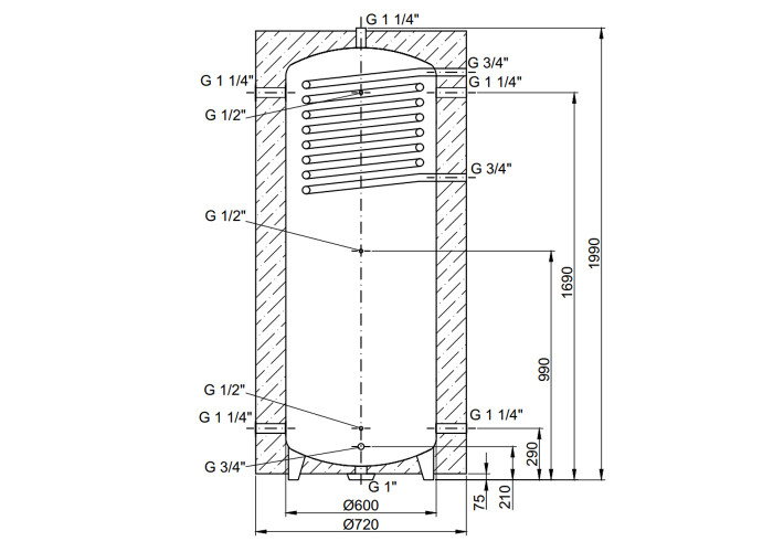 Діаметр підключення до системи опалення