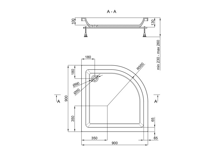 Додаткові характеристики Ніжки піддону регулюються по висоті.