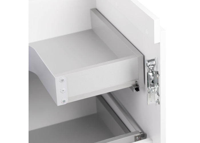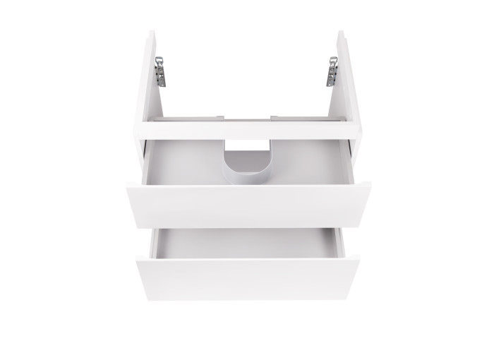 Підвісна тумба Qtap Albatross QT0174TP700DW виконана з отвором під сифон. Корпус тумби виготовлений з ДСП, з двошаровою ламінацією білого кольору, фасадна частина з МДФ з глянцевим покриттям. Виріб оснащений двома зручними і місткими висувними ящиками з механізмом доводчика. Тумба виконана в елегантному лаконічному стилі, який доповнить раковину і впишеться в дизайн будь-якої ванної кімнати. Завдяки підвісній конструкції прибирання приміщення не додасть зайвого клопоту.
