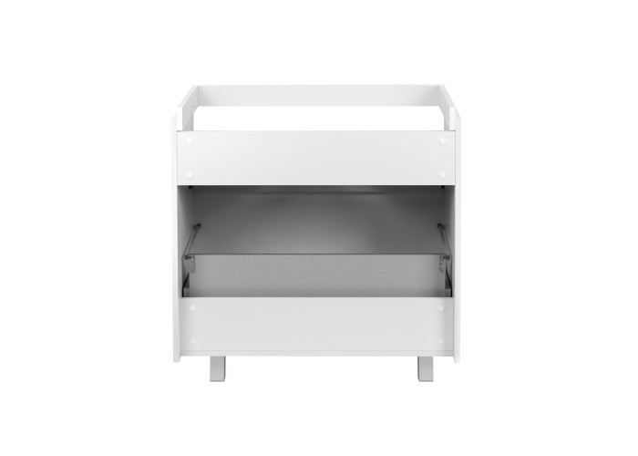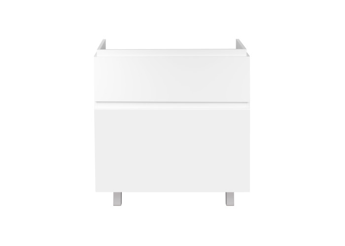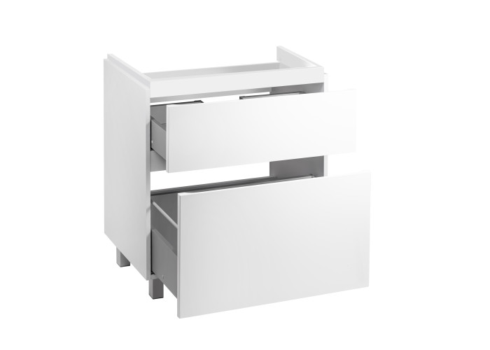 Тумба підлогова Qtap Albatross QT0173TN700DW виконана з отвором під сифон і переливом. У комплекті чотири хромовані ніжки. Корпус тумби виготовлено з ДСП, з двошаровою ламінацією білого кольору, фасадна частина з МДФ з глянцевим покриттям. Виріб оснащено двома висувними ящиками з механізмом доведення. Тумба виконана в елегантному лаконічному стилі, який впишеться в дизайн будь-якої ванної кімнати.