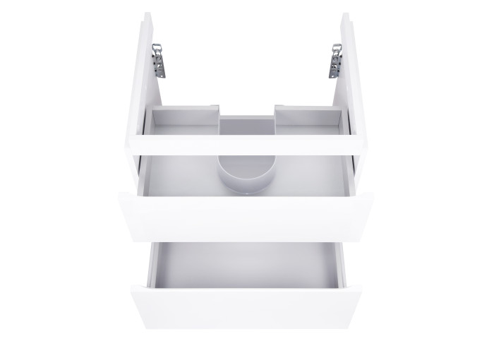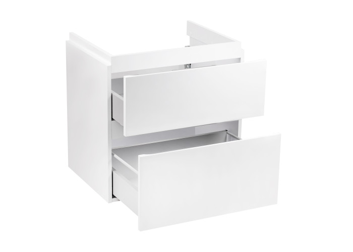 Підвісна тумба Qtap Albatross QT0174TP600DW виконана з отвором під сифон. Корпус тумби виготовлений з ДСП, з двошаровою ламінацією білого кольору, фасадна частина з МДФ з глянцевим покриттям. Виріб оснащений двома зручними і місткими висувними ящиками з механізмом доводчика. Тумба виконана в елегантному лаконічному стилі, який доповнить раковину і впишеться в дизайн будь-якої ванної кімнати. Завдяки підвісній конструкції прибирання приміщення не додасть зайвого клопоту.