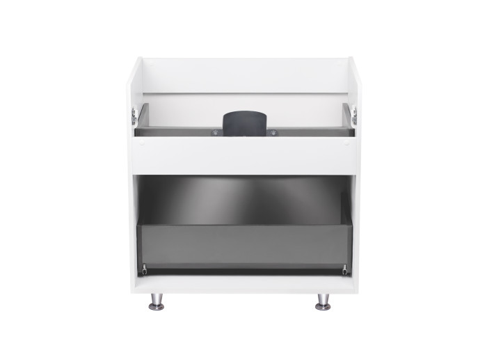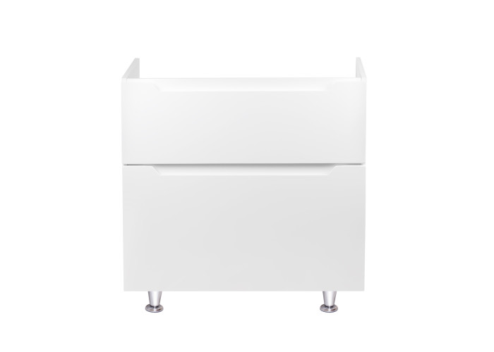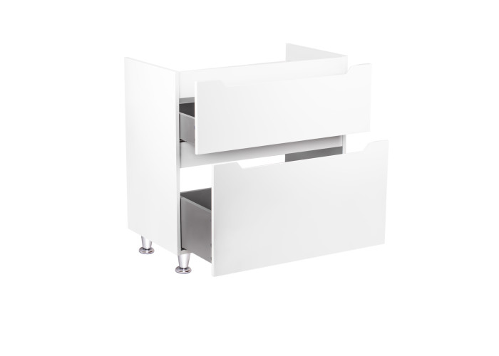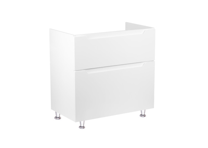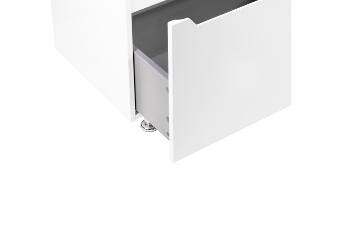 Підлогова тумба Qtap Scorpio QT1473TNВ801W виконана в лаконічному стилі, який доповнить дизайн будь-якої ванної кімнати. Верхній ящик має отвір під сифон. Корпус виробу білого кольору виготовлений з ЛДСП, фасадна частина з МДФ з глянцевим покриттям. Тумба оснащена двома зручними висувними ящиками з механізмом доводчика. У комплектацію входять чотири стійкі металеві ніжки. Раковина у комплектацію не входить.