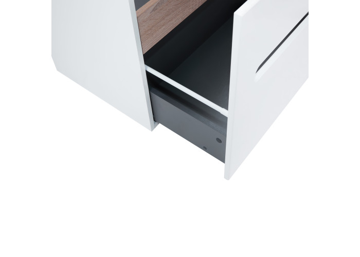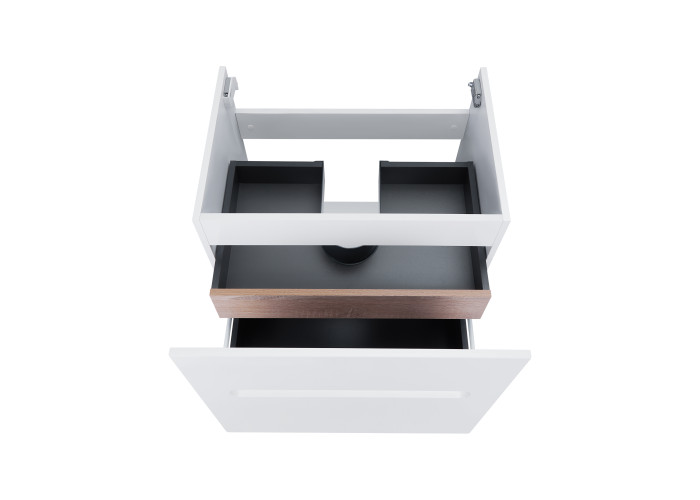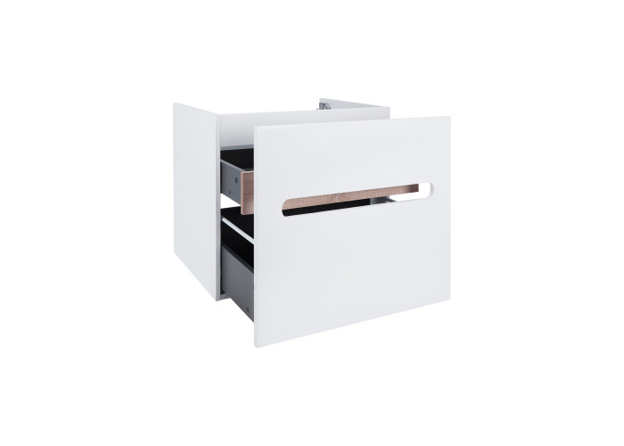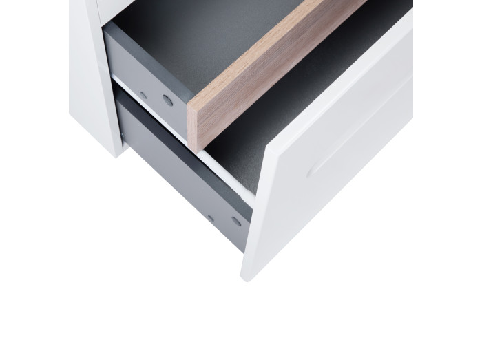 Підвісна тумба Qtap Virgo 600х580х437 White/Whitish oak QT1874TPА601W виконана з отвором під сифон. Корпус тумби білого кольору виготовлений з ЛДСП, фасадна частина з МДФ. Виріб оснащений місткими висувними ящиками з механізмом доведення. Тумба виконана в елегантному лаконічному стилі і доповнить дизайн будь-якої ванної кімнати. Внутрішній ящик виконаний в кольорі білий дуб, це надає виробу оригінальний зовнішній вигляд. Завдяки підвіснїй конструкції прибирання приміщення не завдасть клопоту.
