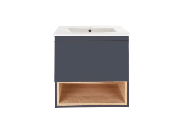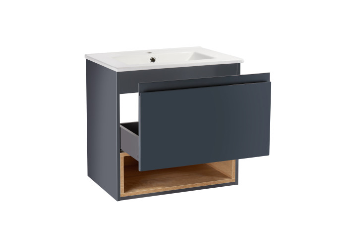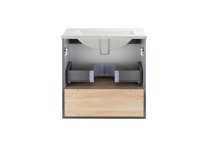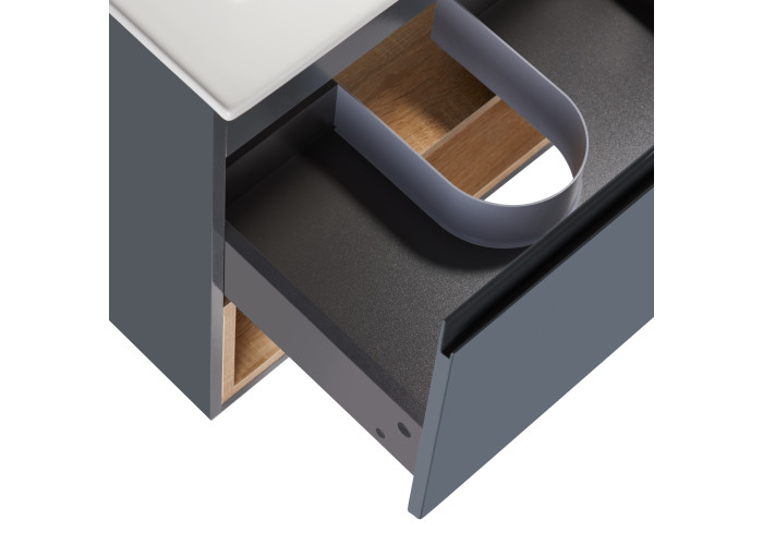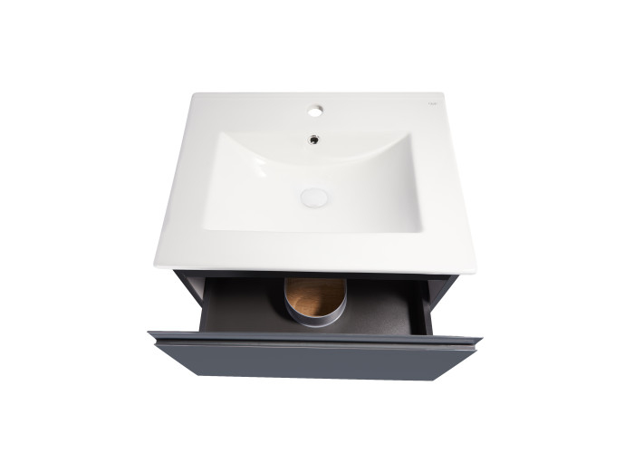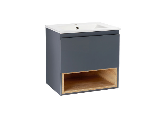 Комплект Qtap Robin 600х580х437 Graphite/Whitish oak тумба підвісна + раковина урізна QT1372TPВ6002GWO