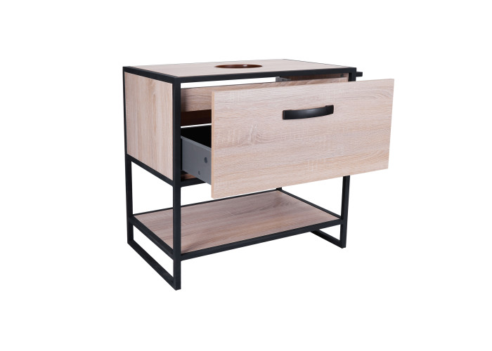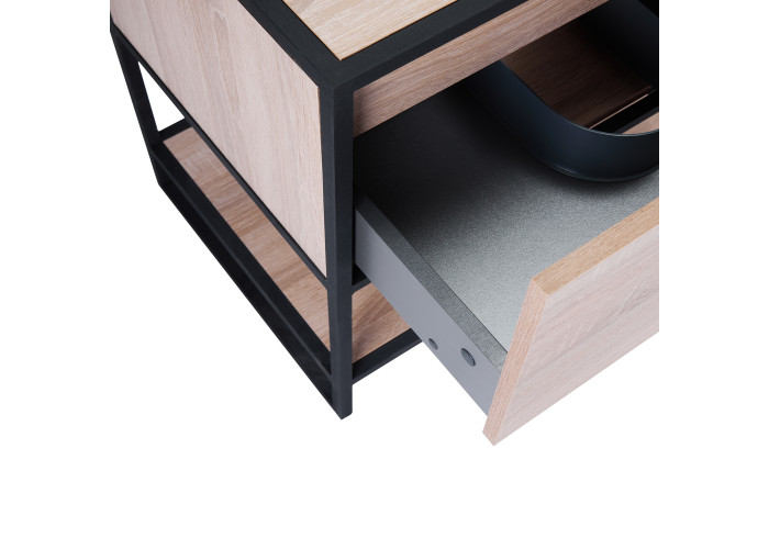 Підлогова тумба Qtap Taurus 700х616х469 Whitish oak зі стільницею QT2480TNT73WO виконана з отвором для встановлення накладної раковини, а також з отвором під сифон. Корпус і фасад тумби кольору білого дуба виготовлений з ЛДСП. Виріб оснащений зручним і містким висувним ящиком з механізмом доведення і полицею. Сталевий фарбований каркас чорного кольору додає тумбі оригінальний зовнішній вигляд, завдяки якому вона підійде до дизайну будь-якої сучасної ванної кімнати.