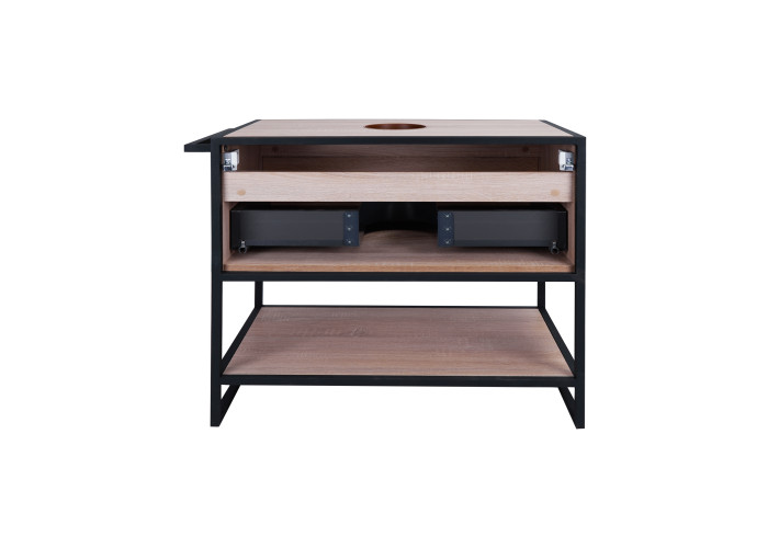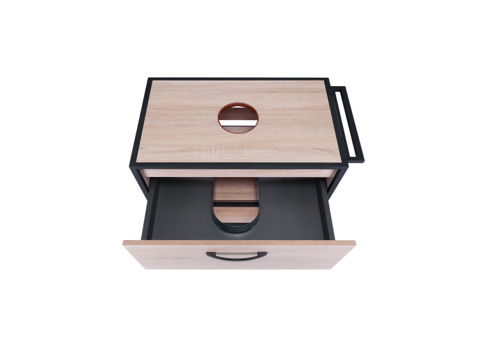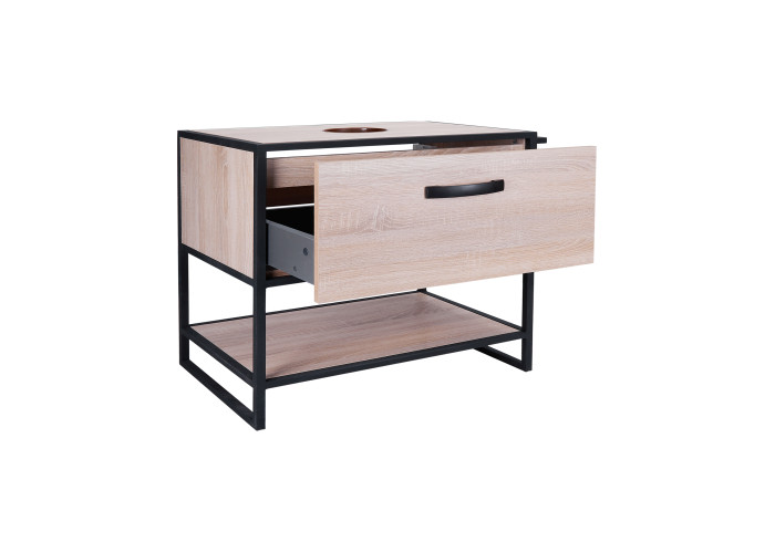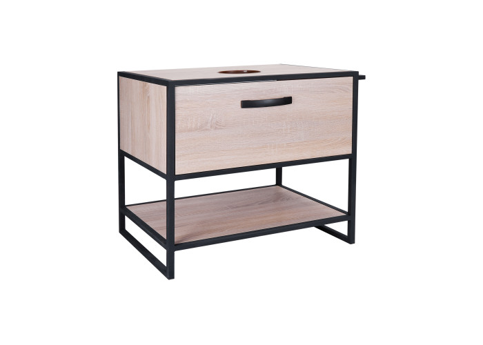 Підлогова тумба Qtap Taurus 800х616х469 Whitish oak зі стільницею QT2480TNT83WO виконана з отвором для встановлення накладної раковини, а також з отвором під сифон. Корпус і фасад тумби кольору білого дуба виготовлений з ЛДСП. Виріб оснащений зручним і містким висувним ящиком з механізмом доведення і полицею. Сталевий фарбований каркас чорного кольору додає тумбі оригінальний зовнішній вигляд, завдяки якому вона підійде до дизайну будь-якої сучасної ванної кімнати.