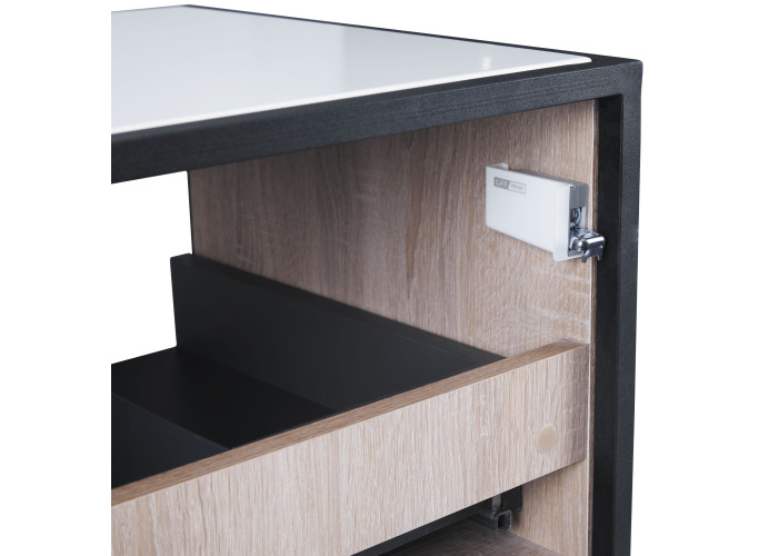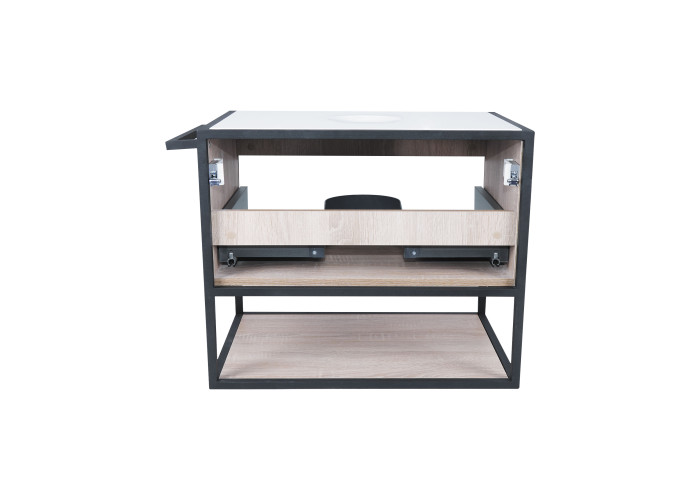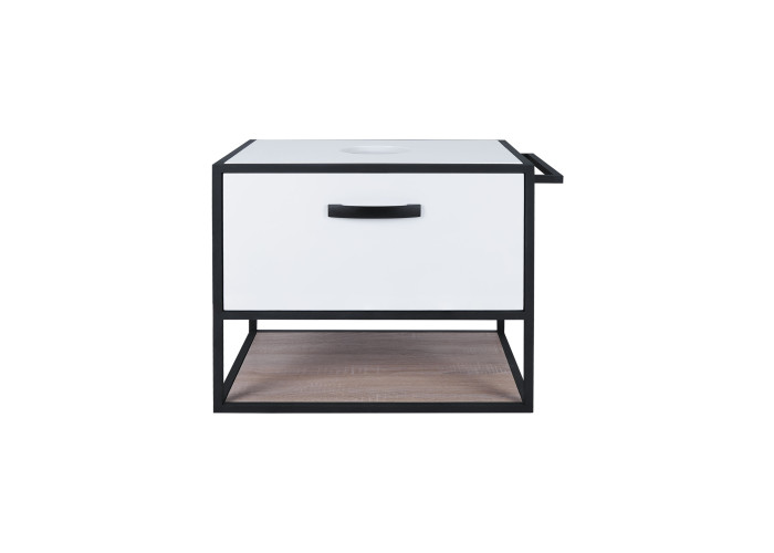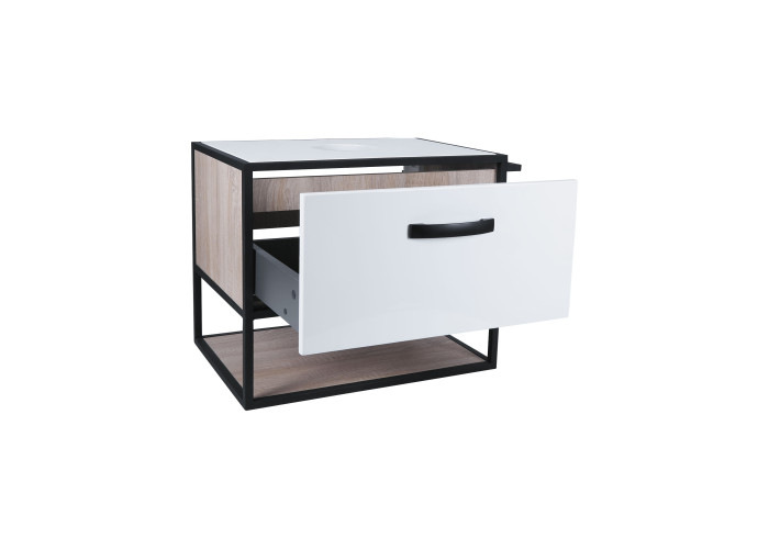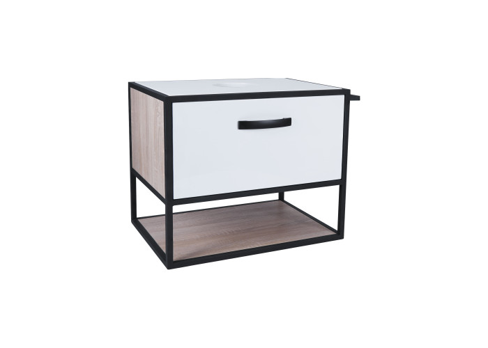 Підвісна тумба Qtap Taurus 700х476х469 White/Whitish oak зі стільницею QT2479TPT703WWO виконана з отвором для встановлення накладної раковини, а також отвором під сифон. Двоколірний корпус тумби виготовлений з ЛДСП, фасадна частина з МДФ. Виріб оснащений зручними і містким висувним ящиком з механізмом доведення і полицею. Сталевий фарбований каркас чорного кольору додає тумбі оригінальний зовнішній вигляд, завдяки якому вона підійде до дизайну будь-якої сучасної ванної кімнати.