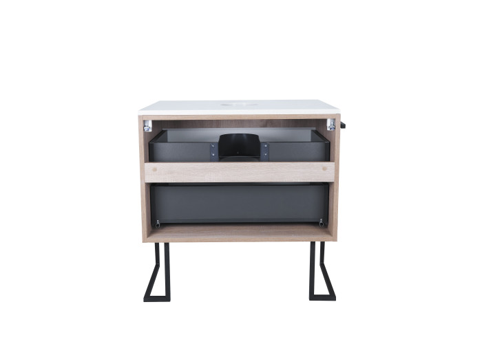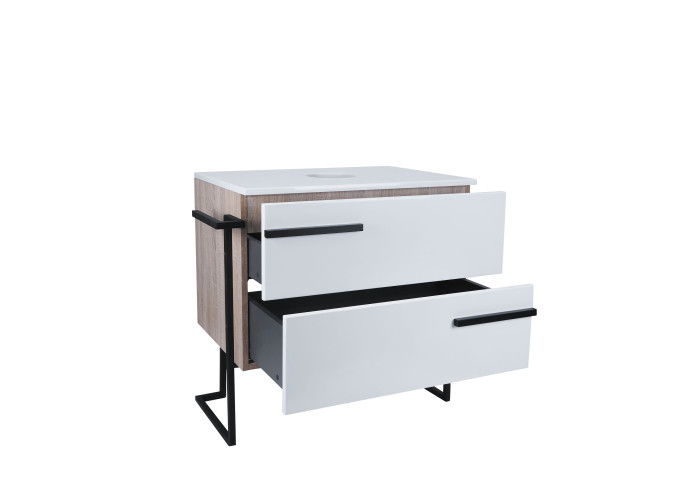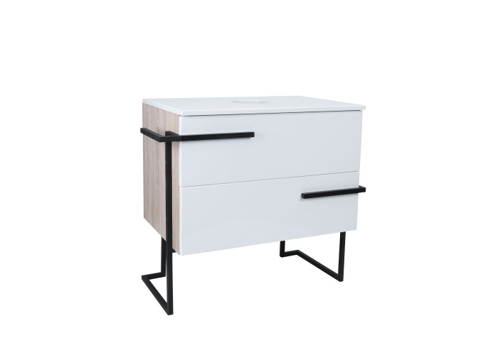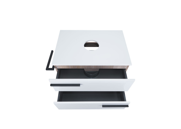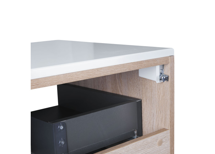Підлогова тумба Qtap Taurus 700х616х437 White/Whitish oak зі стільницею QT2480TNT703WWO виконана з отвором для накладної раковини, а також отвором під сифон. Корпус тумби виготовлений з ЛДСП, фасадна частина з МДФ з глянцевим покриттям. Виріб оснащений зручними і місткими висувними ящиками з механізмом доведення. Суцільнометалевий каркас чорного кольору стане яскравим акцентом. Тумба виконана у лаконічному стилі і підійде до дизайну будь-якої сучасної ванної кімнати.
