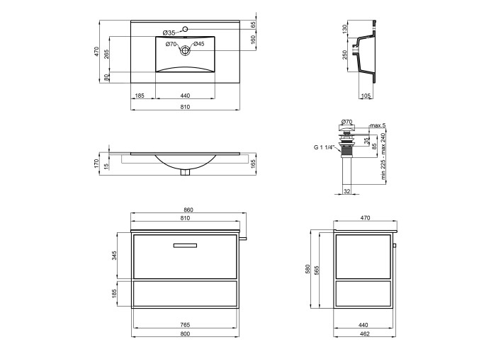 Комплектація Тумба, раковина, донний клапан, кріплення.