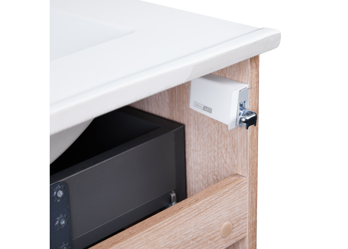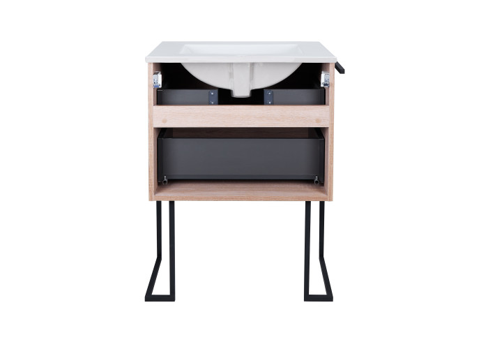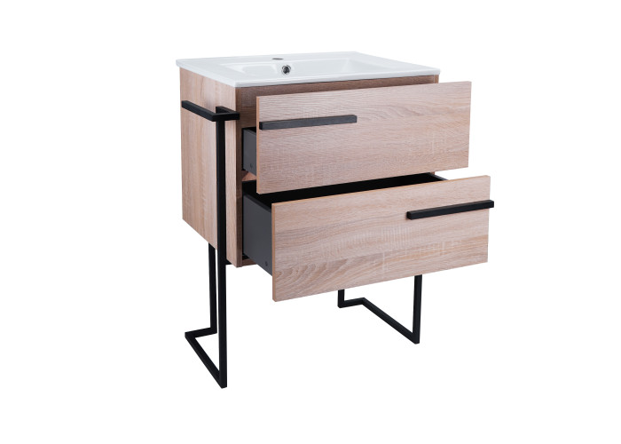 Комплект Qtap Taurus 600х800х437 Whitish oak тумба підлогова + раковина урізна QT2471TNT603WO виконана в лаконічному стилі, який доповнить дизайн будь-якої ванної кімнати. Раковина виготовлена з якісної кераміки білого кольору, вона має отвір під сифон і перелив. Корпус та фасадна частина тумби кольору білого дуба виготовлені з ЛДСП. Виріб оснащено зручними і місткими висувними ящиками з механізмом доведення.