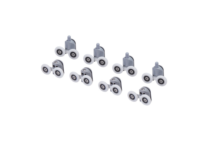 Комплект подвійних роликів Lidz Rolki SAT.DOUBLE.25.5 виконаний з якісних і надійних матеріалів. Підходить для душових кабін з товщиною скла 5 мм. У комплектацію входять 4 штуки нижніх і 4 штуки верхніх роликів.