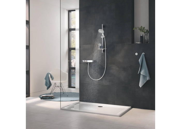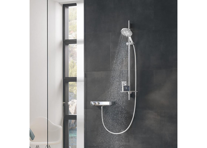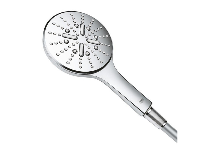 GROHE SpeedClean - запобігання утворенню вапняних відкладень. GROHE DreamSpray - оптимальний розподіл води по кожній душовій форсунці. GROHE StarLight - хромоване покриття. GROHE Inner WaterGuide - запобігання нагріву поверхні лійки. GROHE Massage spray - масажний режим води. GROHE DripStop - не протікає ручний душ після припинення подачі води. GROHE SmartTip - вибір режиму струменя одним дотиком пальця на задній частині душа.