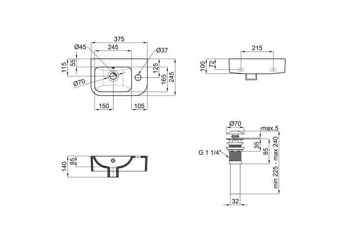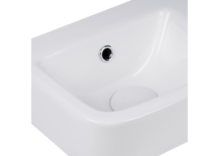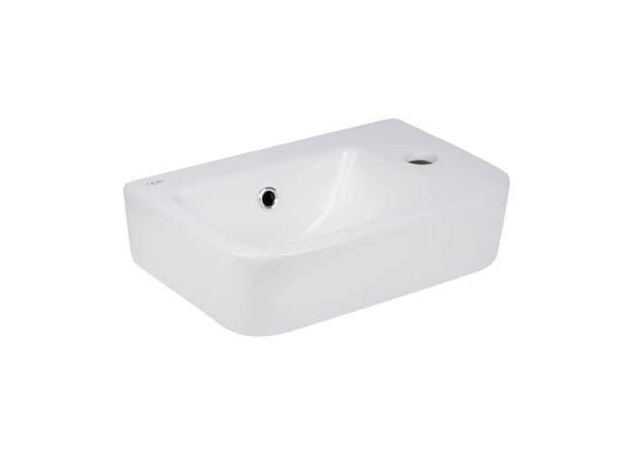 Раковина Qtap Tern QT171110100RW має ергономічну форму, виконана з якісної кераміки білого кольору з отворами для змішувача і переливу. Вона встановлюється на стіну за допомогою кріплень, які входять в комплектацію. На боковій поверхні є можливість розмістити аксесуари і приладдя. Завдяки донному клапану, який входить в комплект поставки, є можливість наповнювати раковину водою. Сифон для раковини купується окремо.