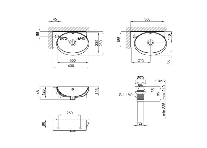 Раковина Qtap Leo QT11115011LW має ергономічну форму, виконана з якісної кераміки білого кольору з отворами для змішувача і переливу. Вона встановлюється на стіну за допомогою кріплень, які входять в комплектацію. Виріб підходить для використання з урізним змішувачем. Завдяки донному клапану, який поставляється разом з раковиною, є можливість наповнювати чашу водою. Сифон для раковини купується окремо.