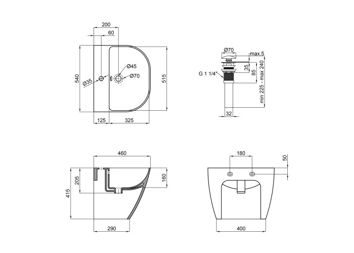 Раковина, донний клапан, кріпильні деталі.