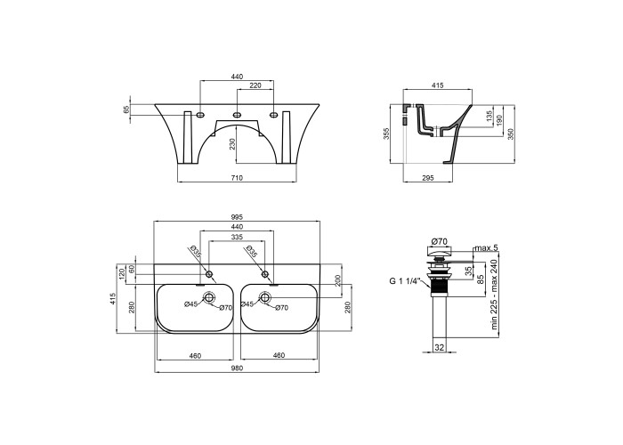 Раковина підвісна подвійна Qtap Virgo 1000х410х360 White QT1811G760W - це моноблок, де чаша і п‘єдестал є одним цілим. За такої конструкції немає потреби докуповувати п‘єдестал окремо. Виріб виконано з якісної кераміки білого кольору, покритої емаллю для захисту від вологи і забруднень. Стильний сучасний дизайн раковини доповнить будь-який інтер‘єр санвузла. Раковина комплектується донним клапаном, що дозволить без зусиль наповнювати чашу водою.