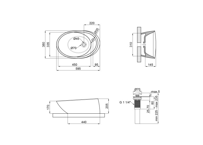 Раковина, донний клапан.